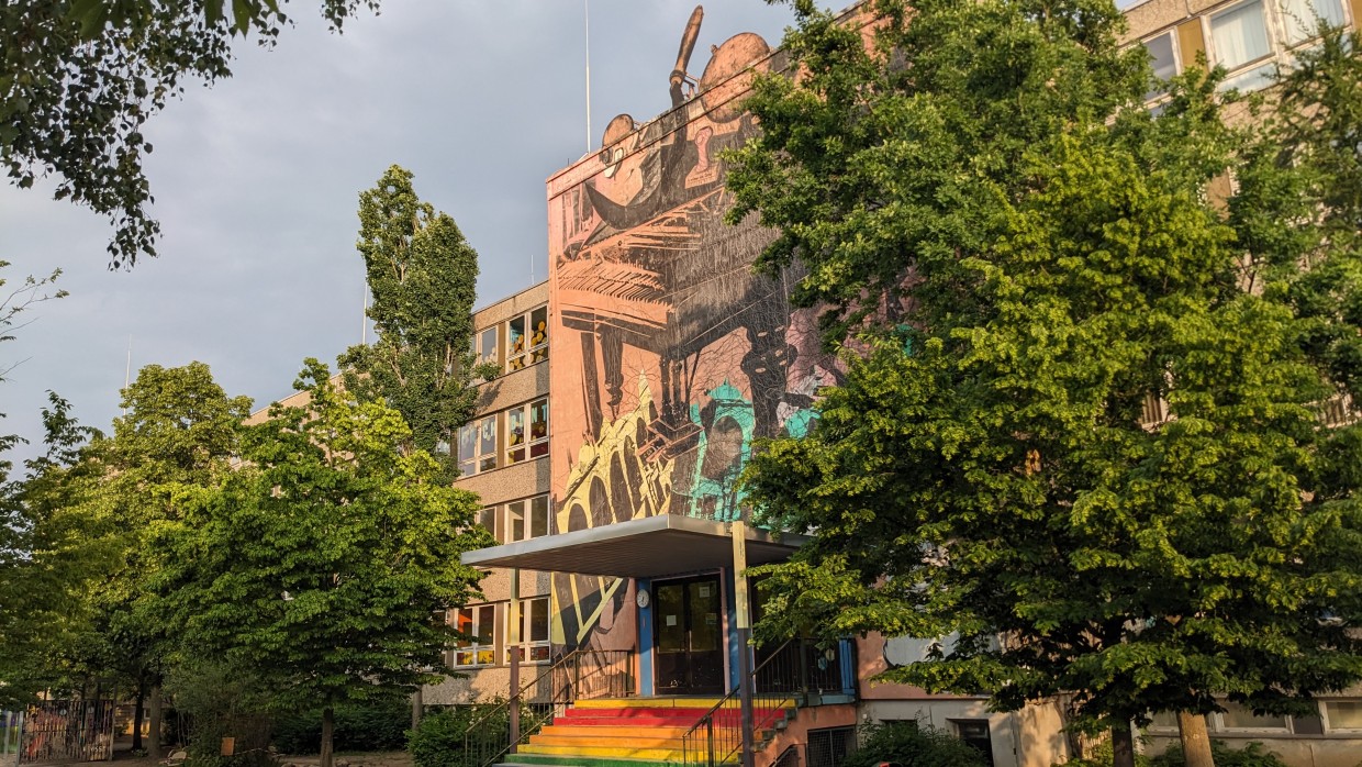In Leipzig mündete die Debatte um die Ostmoderne im vergangenen Jahr in deren Anerkennung - vier Schulen – gebaut in den 1960er und 1970er Jahren – wurden unter Denkmalschutz gestellt. Individuelle Schulbauten sind sie alle nicht, sondern industriell gefertigte Typenbauten, wie sie vielerorts in den neuen Bundesländern zu finden sind. Drei der Schulen gehören zum „Leipziger Gangbautyp“, der mit einem Flügel auskommt und in vielen Fällen dann doch eine individuelle Note bereithält. Denn der hervortretende Eingangsbereich – der Risalit – wurde oftmals für Kunst am Bau genutzt. So war das auch in Leipzig. An der heutigen Medizinischen Berufsfachschule des Klinikum St. Georg Leipzig findet sich ein Glasmosaik des ehemaligen Rektors der Hochschule für Grafik und Buchkunst Leipzig (HGB). Seine Schüler André Böhme und Olaf Bote übernahmen den Eingangsbereich der 100. Schule in Lausen-Grünau, während der Maler und Grafiker Arnd Schultheiß ein Betonplattenmosaik für die Kurt-Biedermann-Schule in Schönau entwarf.