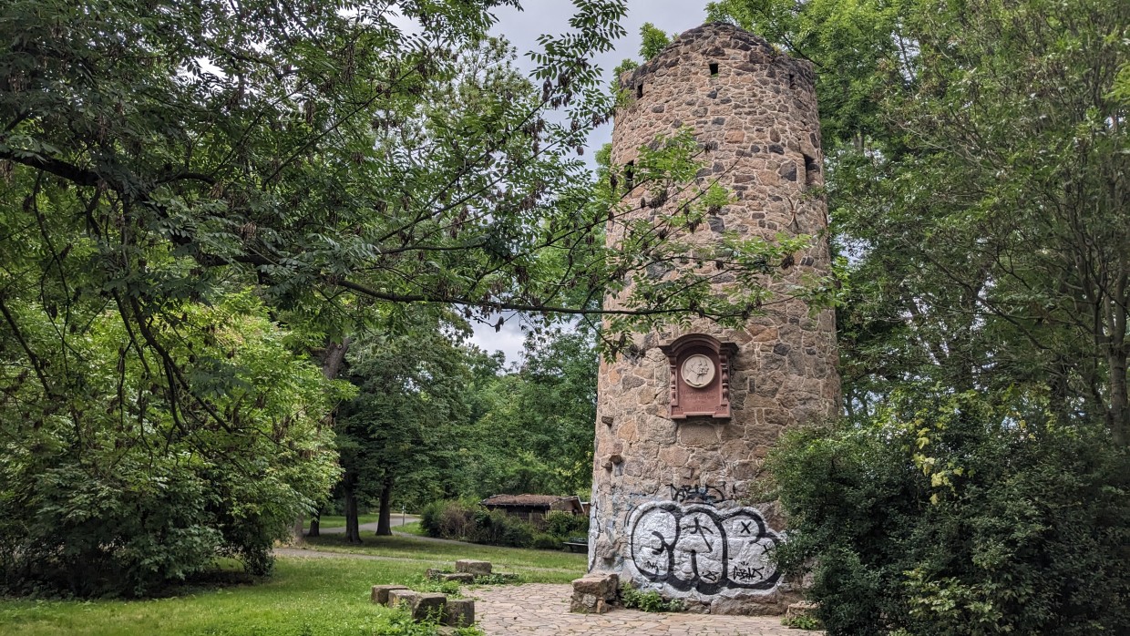 Beginnen wir im Leipziger Stadtteil Stötteritz des 19. Jahrhunderts, damals noch Thonberg, im Osten der Stadt gelegen. Der Psychiater Dr. Eduard Wilhelm Güntz, gründet dort im Jahr 1839 eine psychiatrische, stationäre Klinik. Güntz zielte mit seiner privaten Anstalt auf gut betuchte Bürgerinnen und Bürger, die sich die Versorgung leisten konnten. Er wollte alternativ zur damaligen, öffentlichen Versorgung eine umfassende und stärker an den Bedürfnissen der Patientinnen und Patienten ausgerichtete Form der Behandlung und Pflege erreichen. Das Feedback der sich ihm anvertrauenden Bürgerinnen und Bürger schien positiv auszufallen. Im Jahr 1886 stiften sie ihm einen ganzen Turm mitsamt Dankbarkeitsstein. Heute ist auf dem ehemaligen Gelände der Anstalt – ihr Betrieb wurde im Jahr 1920 eingestellt – der Güntz-Park oder auch Thonberg-Park zu finden. Park wie Turm stehen heute unter Denkmalschutz und erinnern an einen, der für Humanismus in der Psychiatrie einstand. Ein weiteres Werk erinnert übrigens an Güntz und auch der Park mit seinem Turm tauchen dort auf. Der Leipziger Autor Clemens Meyer webt die Geschichte der Anstalt und die nicht gerade denkmalgerechte Nutzung des Turms in den 90er Jahren des 20. Jahrhunderts in seinem neuen Roman „Die Projektoren“ ein.